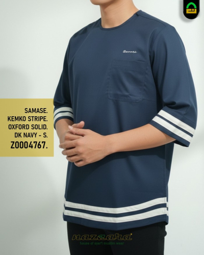 Kemeja Koko Samase dengan stripe pada lengan dan bagian bawah Kemeja. Panjang lengan 3/4 dengan resleting di pundak sehingga terlihat santai dan casual.
