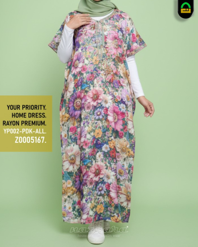Your Priority Home Dress. Lengan Pendek YP007. Home Dress atau Daster motif floral dengan bordir pada bagian dada sekitar resleting disertai tali kecil. Bordir juga diaplikasikan pada ujung lengan. Home dress ini memiliki lengan pendek sehingga memudahkan ukhti melakukan berbagai aktivitas pekerjaan rumah. Busui dan Bumil Friendly. Lingkar Dada 140 cm dan Panjang Badan 120… selengkapnya