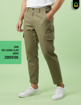 Esembe Sirwal Cargo Slim B005R. Sirwal dengan saku utility (cargo) slim look. Bahan: Twill Stretch. Warna: Army. Size: M (lihat detail di Size Chart).