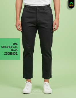 Esembe Sirwal Cargo Slim B005R. Sirwal dengan saku utility (cargo) slim look. Bahan: Twill Stretch. Warna: Black. Size: M, XL (lihat detail di Size Chart).